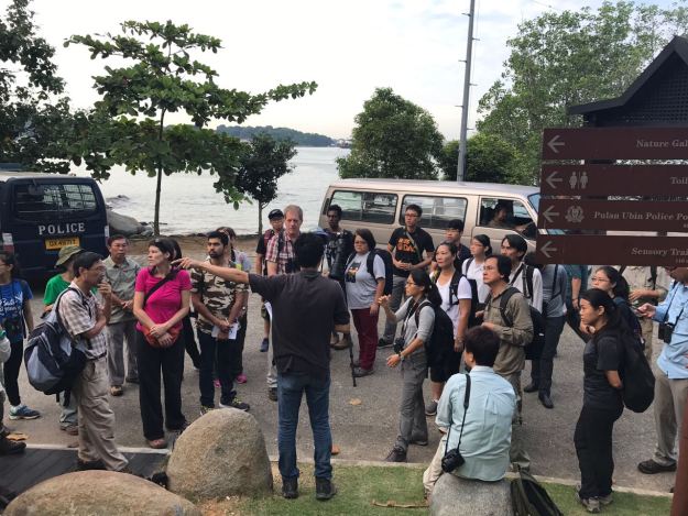| Yong Ding Li back to camera briefing the surveyors at Pulau Ubin on the census. Photo: Lim Kim Chuah. |
